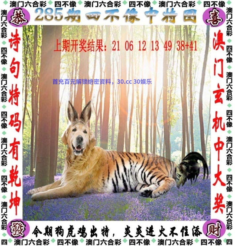 284期⑨肖╠猪兔鸡龙马羊猴牛虎╣开:牛41中 |